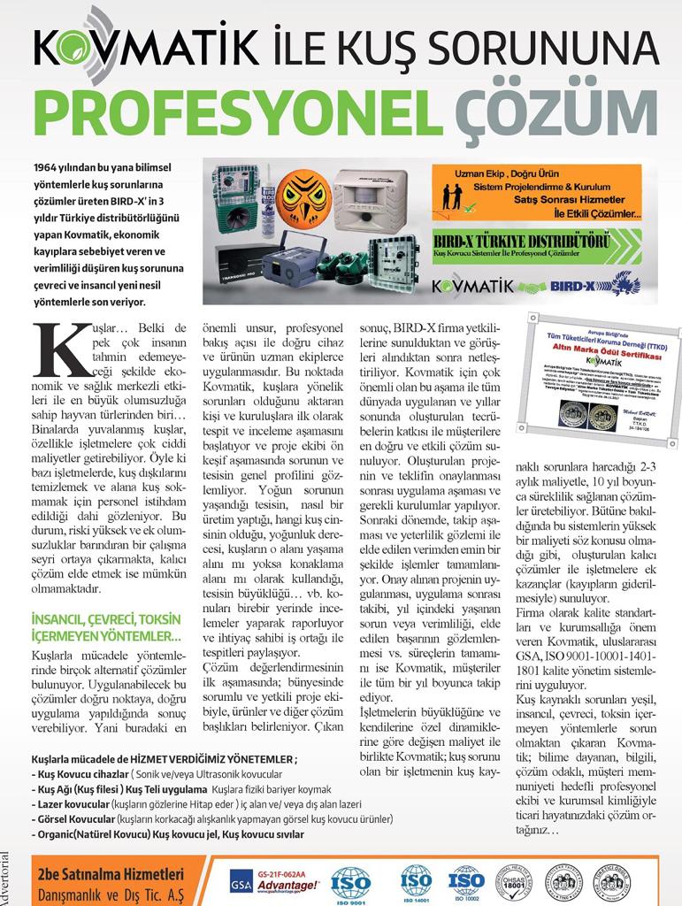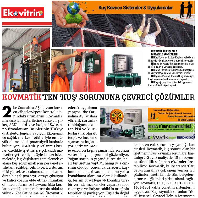 Uzman ekibiyle profesyonel çözümler sunan Kovmatik’e ait kuş ağı uygulama ve kuş filesi uygulama hizmetleri, ürünlerine ilişkin basın yansımaları…